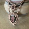 Αυτό το μακρραμέ κολιέ είναι κατασκευασμένο με κηροκλωστή άριστης ποιότητας και τις ημιπολύτιμες πέτρες Ροδονίτη και Φραουλίτη. Με αυξομείωση για να προσαρμόζεται στο επιθυμητό ύψος.