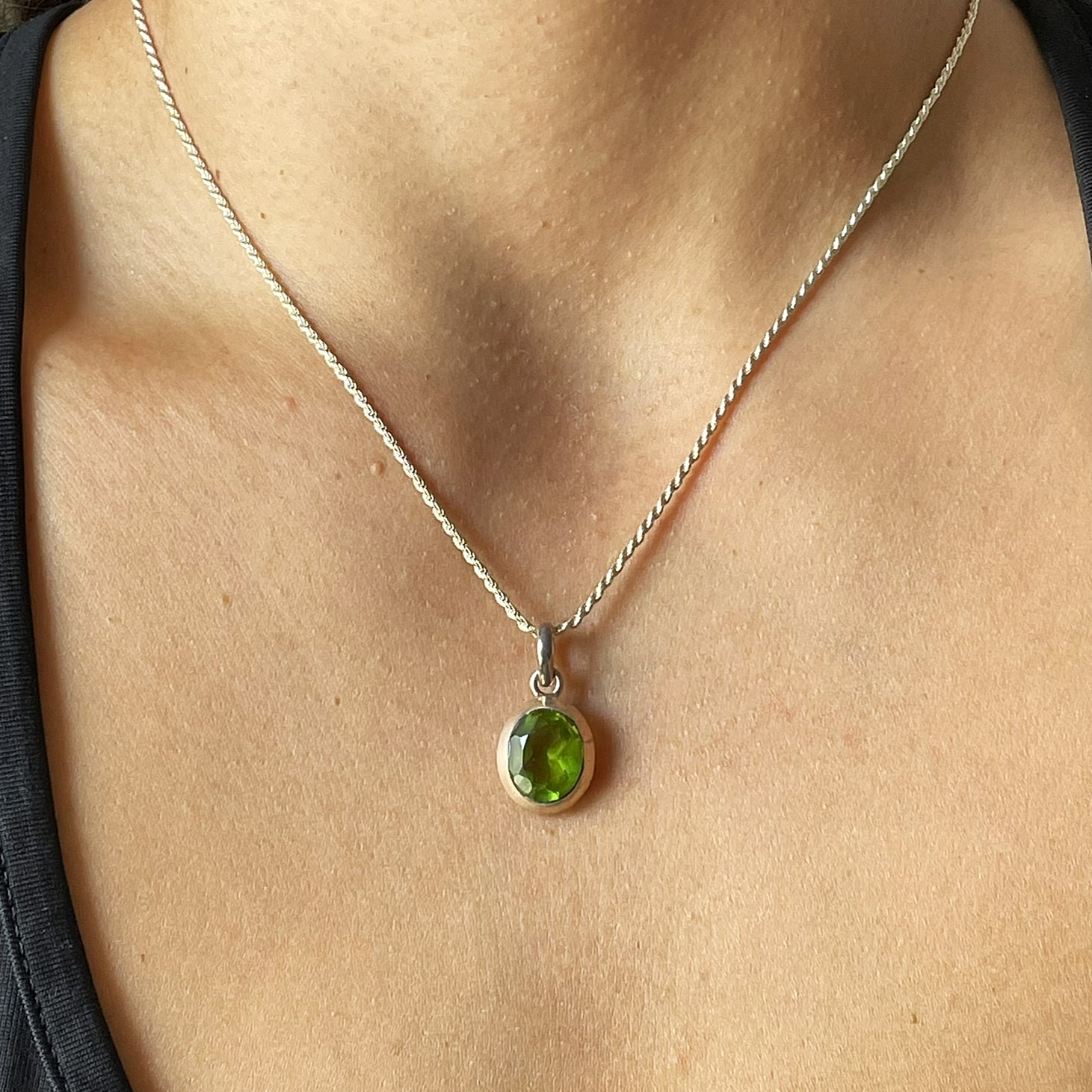 Αυτό το κολίε είναι κατασκευασμένο με ασήμι 925 και με τον ημιπολύτιμο λίθο Περίδοτο. Όλα τα κοσμήματά μας κατασκευάζονται στο εργαστήριο μας με πολύ μεράκι, και εκτός από τα μικρά και απλά μας σχέδια όλα είναι μοναδικά και δεν κατασκευάζονται σχεδόν ποτέ με τον ίδιο τρόπο! Όλα τα ασημένια κοσμήματα μας συνοδεύονται με prenium συσκευασία suede τσαντάκι-φακελάκι σφραγισμένο με την επωνυμία μας!