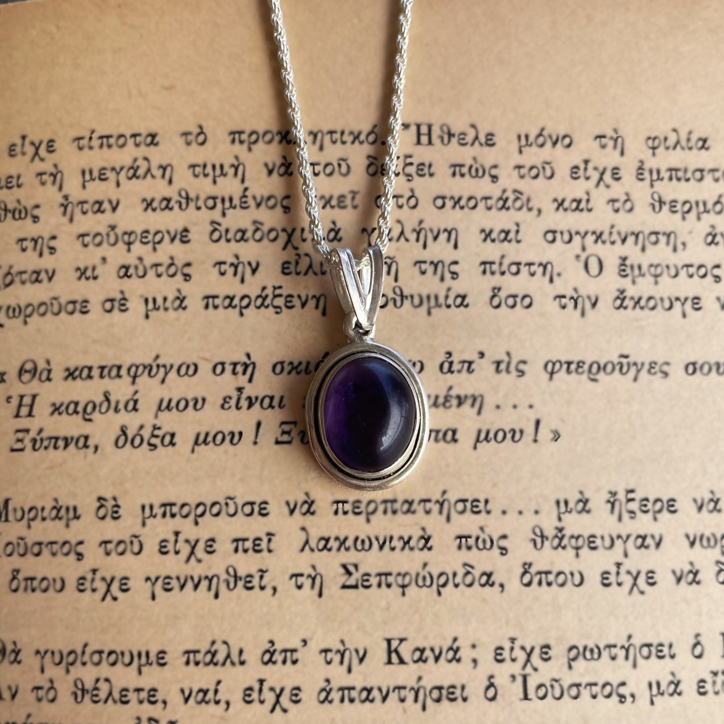 Αυτό το κολίε είναι κατασκευασμένο με ασήμι 925 και με τον ημιπολύτιμο λίθο Αμέθυστο . Όλα τα κοσμήματά μας κατασκευάζονται στο εργαστήριο μας με πολύ μεράκι, και εκτός από τα μικρά και απλά μας σχέδια όλα είναι μοναδικά και δεν κατασκευάζονται σχεδόν ποτέ με τον ίδιο τρόπο! Όλα τα ασημένια κοσμήματα μας συνοδεύονται με prenium συσκευασία suede τσαντάκι-φακελάκι σφραγισμένο με την επωνυμία μας!